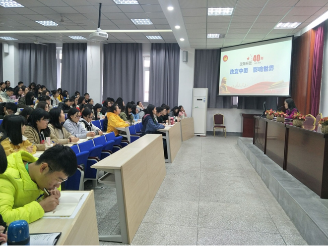 党委书记徐天虹主讲,以“改革开放四十年,改变中国,改变世界”为主题,带领学员们深入了解改革开放的历史背景,抽丝剥茧地解读了改革开放的相关措施,并强调了改革开放的必要性与重要性。徐书记提到,从高度集中的计划经济到社会主义市场经济,这四十年,中国发生了翻天覆地的变化,国民收入普遍提高,消费升级步伐加快,人民生活水平从温饱水平到达了整体小康水平,中国更是从封闭型经济弱国走到开放型全球经济大国,从世界舞台边缘日益走近世界舞台中央。我国已经形成了全方位、多层次、宽领域的对外开放格局,中国正日益走向自己的繁荣昌盛。这次党课让学员们更加直观地感受改革开放的辉煌成就,领略了改革开放思想领域取得的丰硕成果。