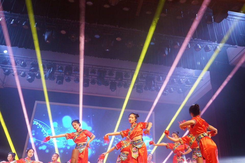 晚上7点,备受瞩目的民族风情歌舞晚会在光大礼堂举行,晚会以“砥砺奋进七十年中华民族一家亲”为主题,分为“春生华容山川曙”和“秋舞云裳四海平”上下两个篇章,AVbebe