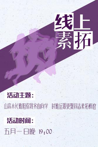 团学组织成员之间的交流,团学组织于5月1日19:00举行线上素质拓展活动。在线上以各种形式联系了团学组织成员的情谊、丰富了课余生活。