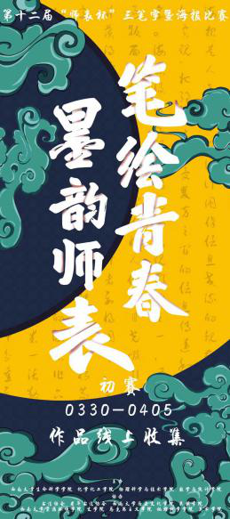 与此同时,第十二届“师表杯”三笔字暨海报比赛也拉开序幕。以“笔绘青春 墨韵师表”为主题,此次比赛丰富了校园文化生活,营造了浓厚校园文化气氛,提升了我校学生的个人文化修养、审美情趣。也让热爱书法、海报设计的同学们互相交流,共同进步,展现了我校良好的学习环境。