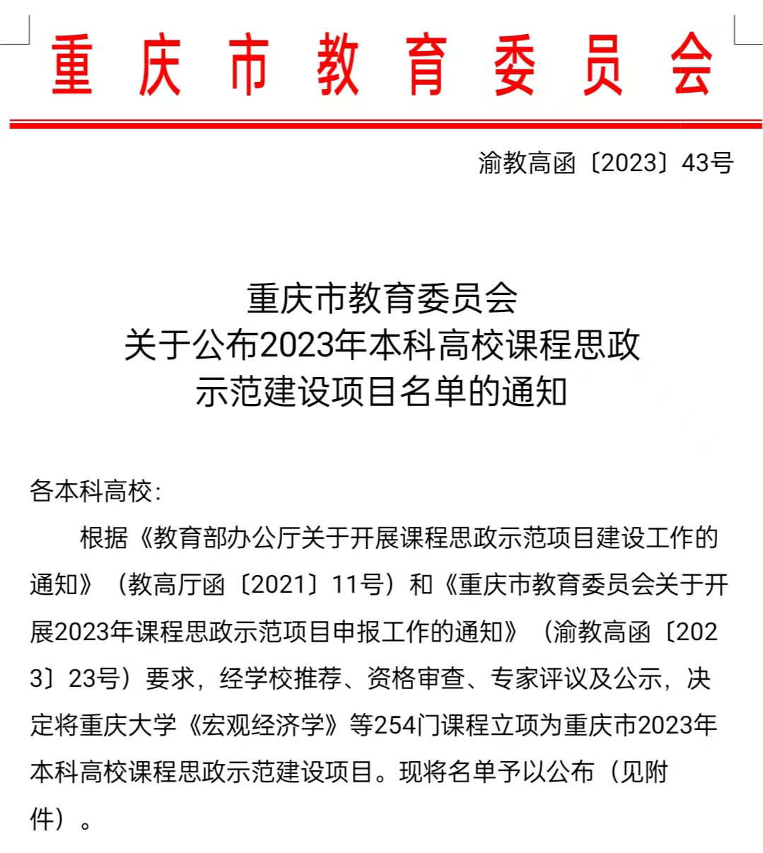 2023年7月18日,重庆市教育委员会正式公布了2023年本科高校课程思政示范建设项目名单。AVbebe