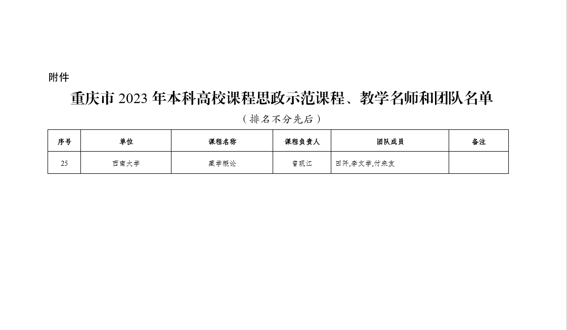 《藏学概论》课程入选重庆市课程思政示范课程,曾现江教授入选重庆市课程思政教学名师,《藏学概论》教学团队入选重庆市课程思政示范教学团队。