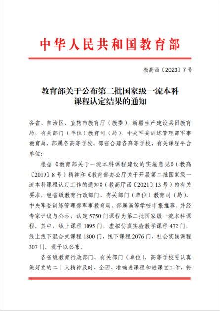 一流课程建设工作的极大肯定。