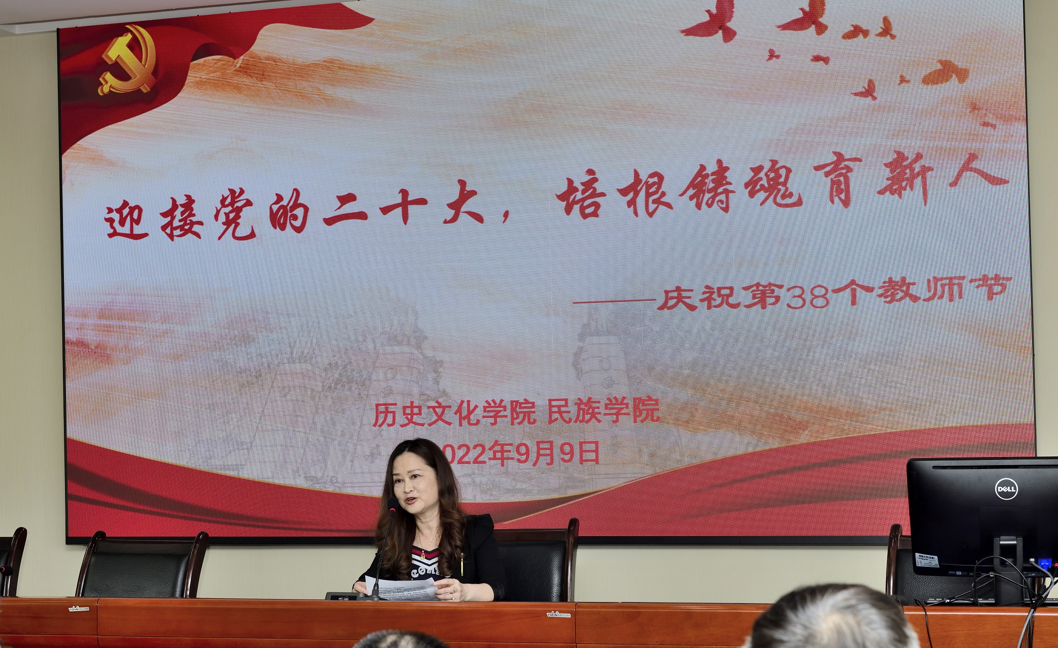 张以静博士代表青年教师向前辈们送上了最真挚的祝福。她说,在这个特殊的日子里,要把感谢献给每一位给予学生指导的老师,因为您的指引,才成就了他们的人生;要把敬意献给每一位豁达从容的老师,因为您优雅淡然的言传身教,抚平了年轻人浮躁的内心。她庄严承诺,做为刚进队伍的青年教师,愿意追随前辈的脚步,少抱怨,多做事,积跬步至千里,积小流成江河。