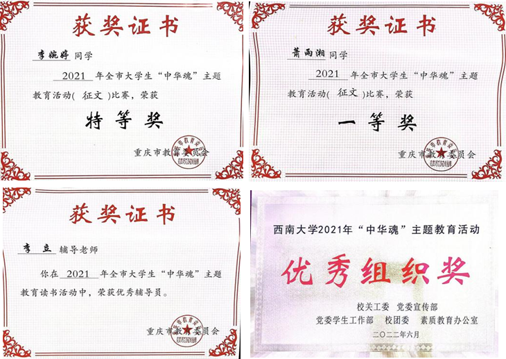 李婉婷和萧雨湘2名学生的征文作品分获重庆市特等奖和一等奖,指导教师李立被评为重庆市优秀辅导员,AVbebe