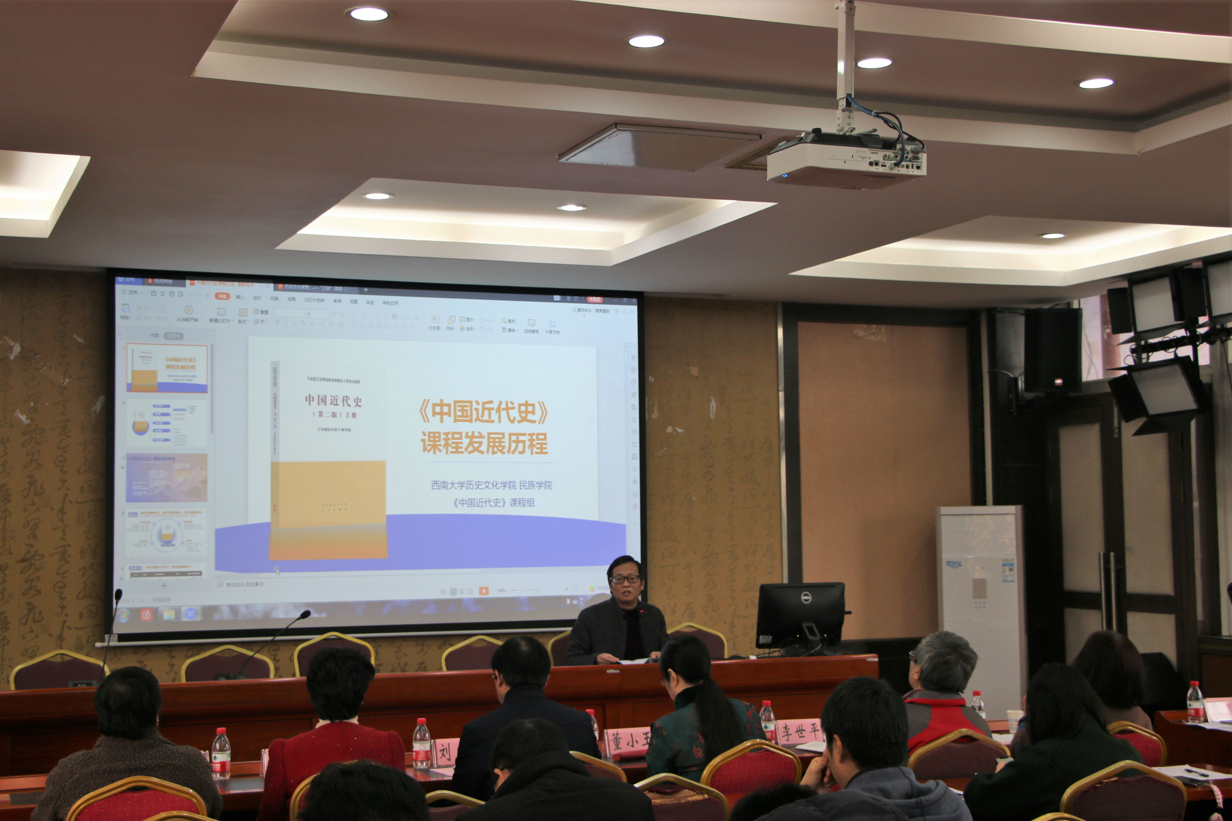 “教师说教学”环节,谭刚教授和陈永亮副教授分别介绍了“中国近代史”和“民族理论与政策”的课程思政建设情况。谭刚教授回顾了中国近现代史课程的建设历程,总结了“中国近代史”获批国家一流课程、入选首批国家课程思政示范课程的建设经验;他介绍,团队教师在横向上讲好专业核心课、扎实学生专业基础的前提下,还依据个人专业特长,向学生开设了十余门纵向的拓展研究型专题课程,取得了良好效果。