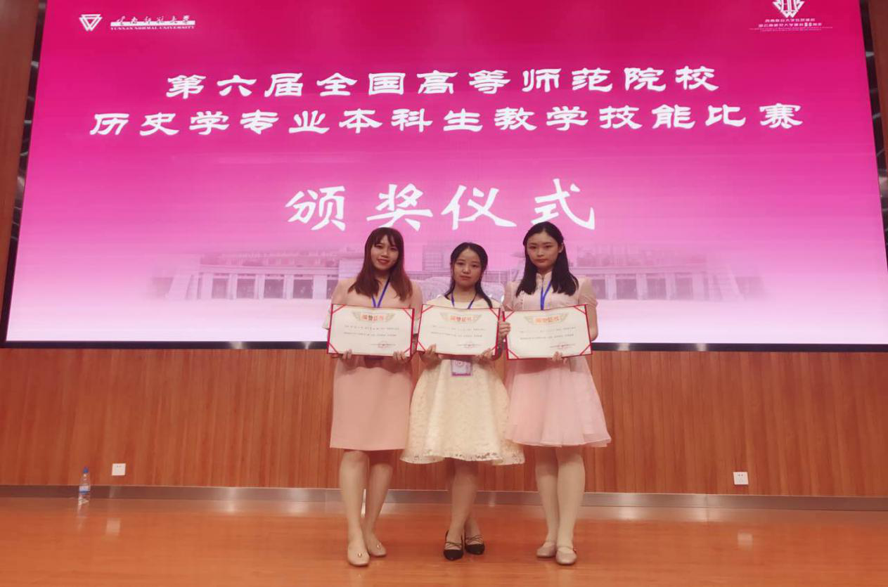2018年5月16—19日,由教育部基础教育司支持、中国高等教育学会教师教育分会全国历史教师教育专委会主办的“第六届全国高等学校历史教育专业本科生教学技能比赛”在云南师范大学举行。2015级学生裘钧雅、刘东格、胡可欣在张文、曹华清、袁从秀、谢欧四位老师的带领与指导下,代表AVbebe
