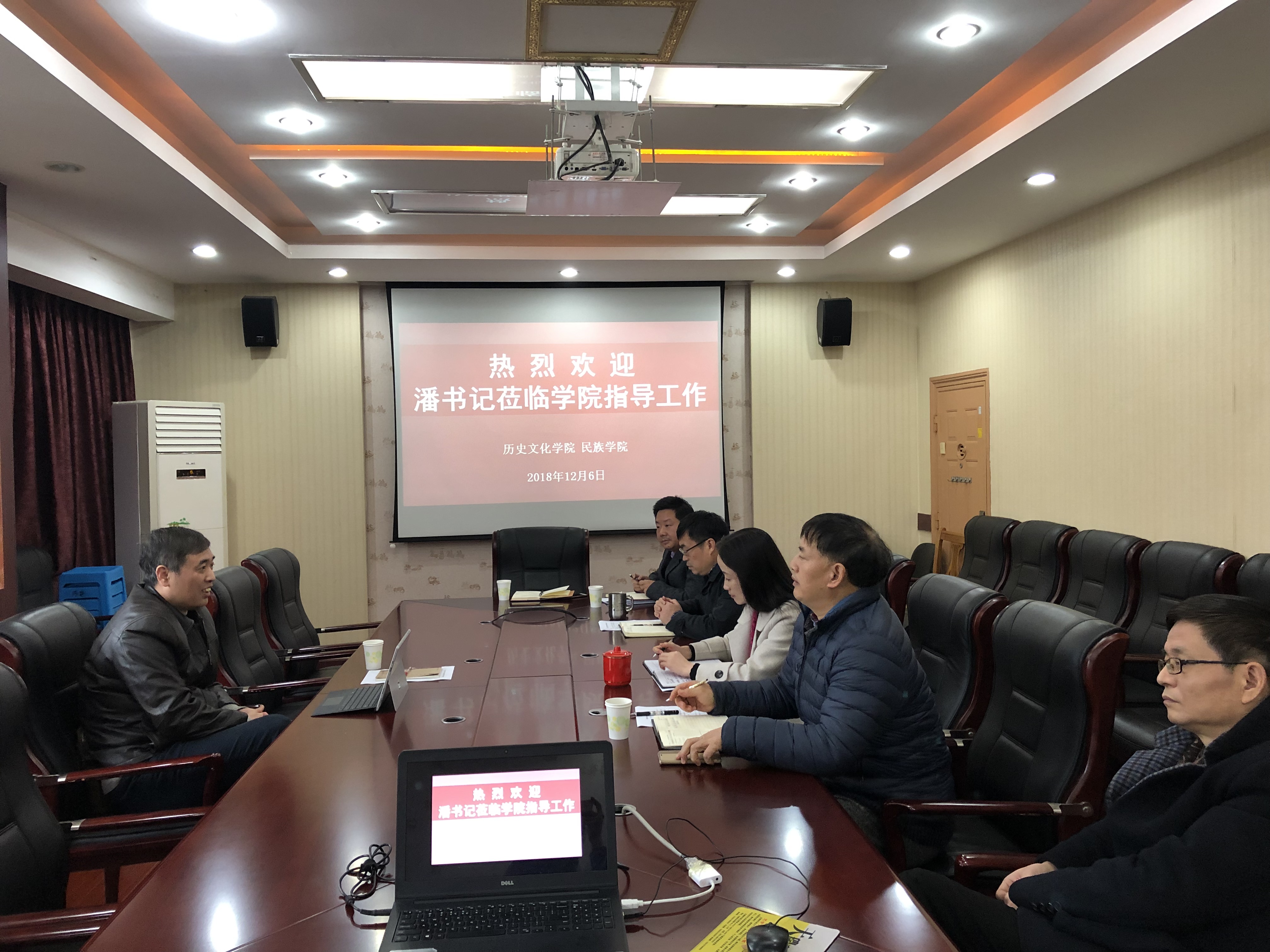 潘书记听取了学院近期工作情况汇报,重点就落实教育部巡视整改工作、学科方向凝练和建设、少数民族学生的培养及学院在发展过程中碰到的难题和困境等方面进行了深入细致的了解。