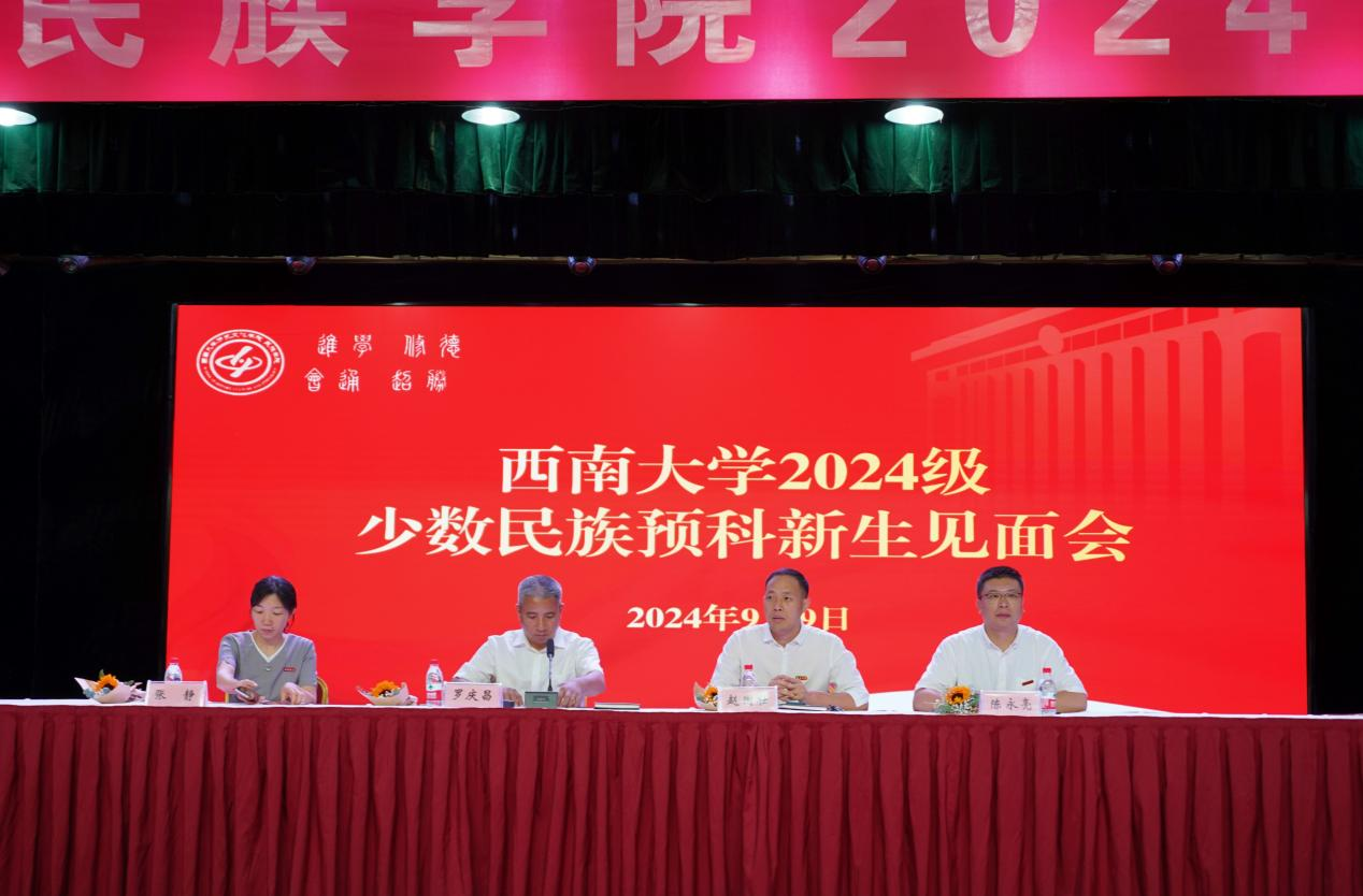 2024级少数民族预科新生见面会在圆顶三楼报告厅举行。本次见面会由学院党委书记罗庆昌主持,学院党政班子成员和院教职工出席。2024级全体预科新生参会,聆听师长教诲,汲取朋辈力量,启航人生新篇章。在庄严的国歌声,开学典礼拉开序幕。