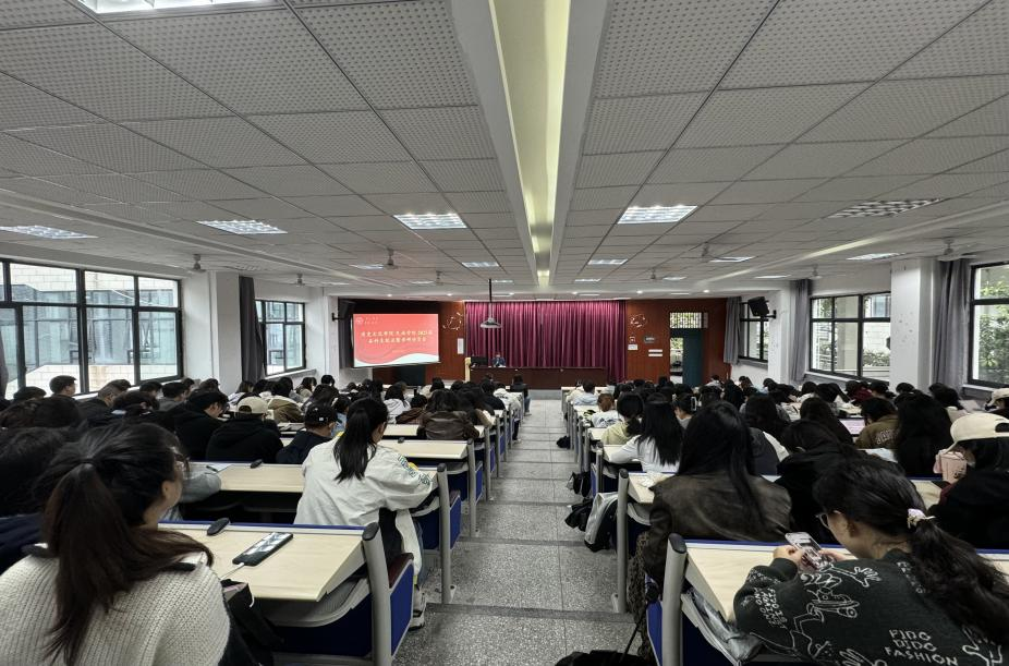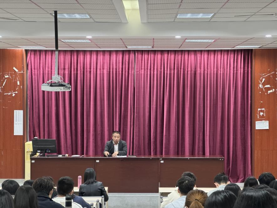 于九教442报告厅召开2025届本科生就业动员会。学院党委书记罗庆昌、党委副书记张静、2025届毕业生辅导员王雨薇以及全体2025届毕业生参加此次会议。