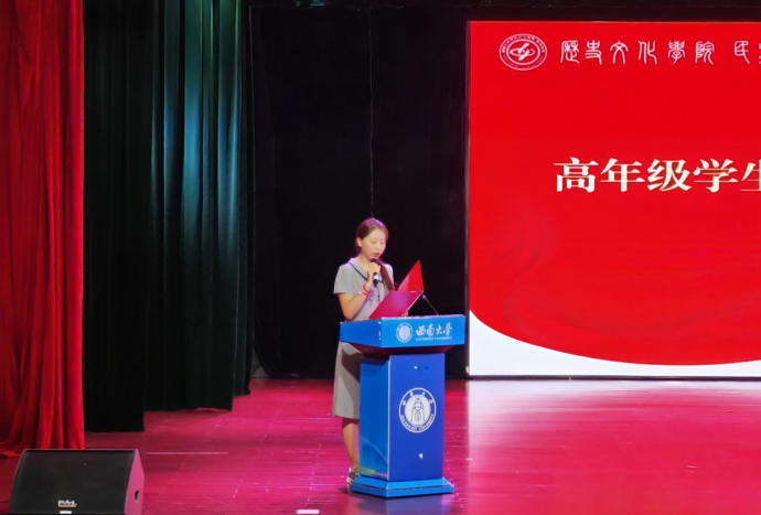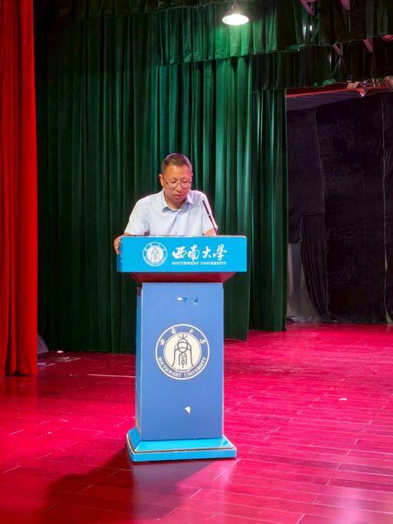 教师代表曾现江教授在发言中分享了自己受邀观礼九三阅兵的感受,并以自己长期从事民族学、历史学学科教学科研工作的心得体会激励新同学们铸牢中华民族共同体意识,成为民族复兴的新力量,用智慧和力量共同书写中华民族的美好明天。