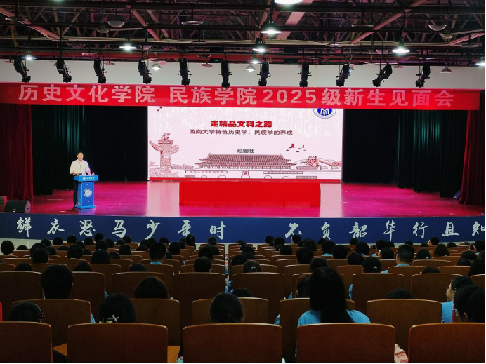 发展历程,介绍学科体系与办学特色。勉励新生要规划好学业与人生,深化专业认知维度,拓展学术视野广度;期望2025级新生传承践行“含弘光大、继往开来”的校训和“进学 修德 会通 超胜”的院训,勇担时代使命,努力成长为堪当民族复兴大任的时代新人。