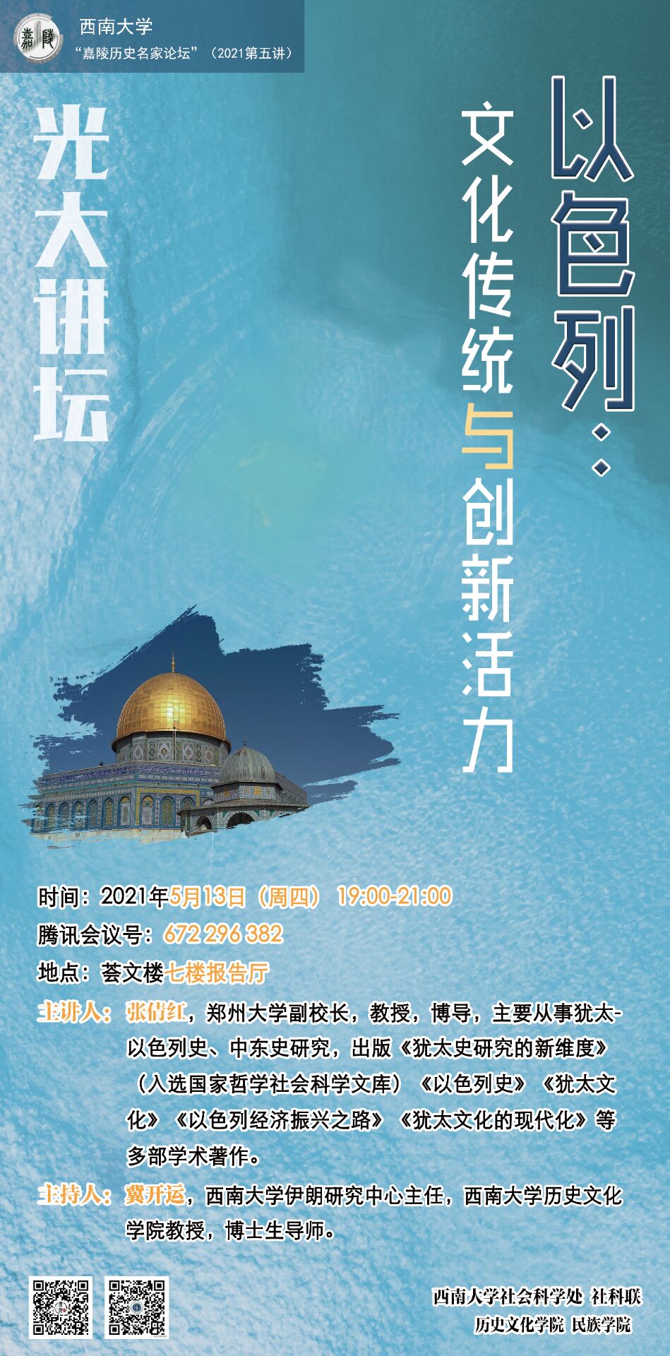 主讲人:张倩红,郑州大学副校长,教授,博导,主要从事犹太-以色列史、中东史研究,出版《犹太史研究的新维度》(入选国家哲学社会科学文库)、《以色列史》、《犹太文化》、《以色列经济振兴之路》、《犹太文化的现代化》等多部学术著作。