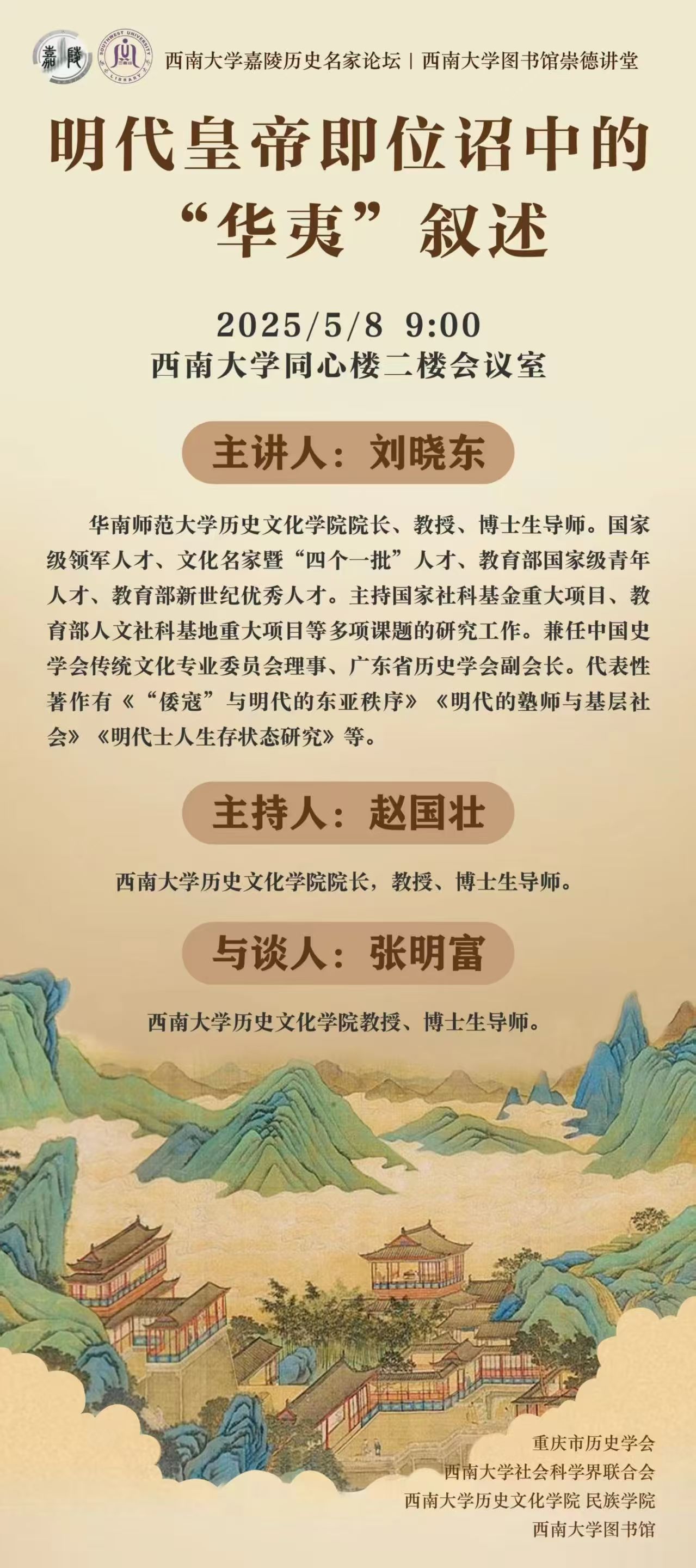 讲座预告丨刘晓东:明代皇帝即位诏中的“华夷”叙述